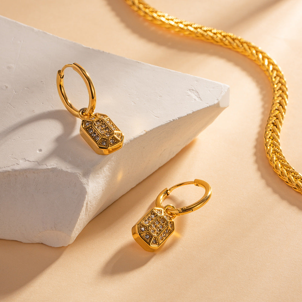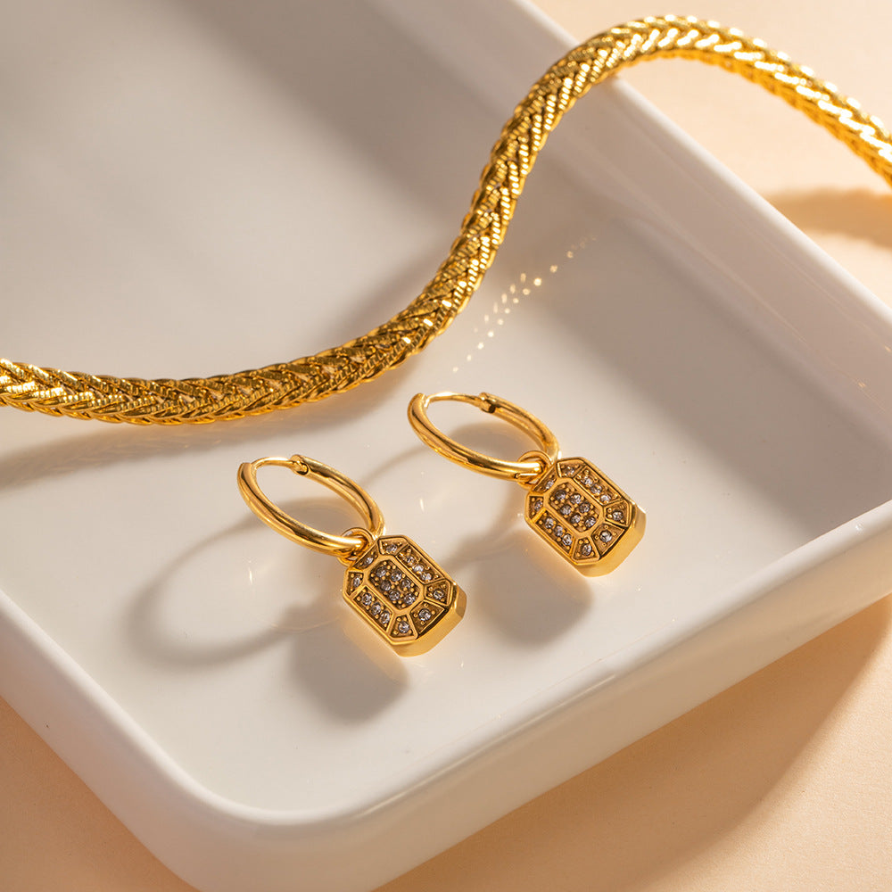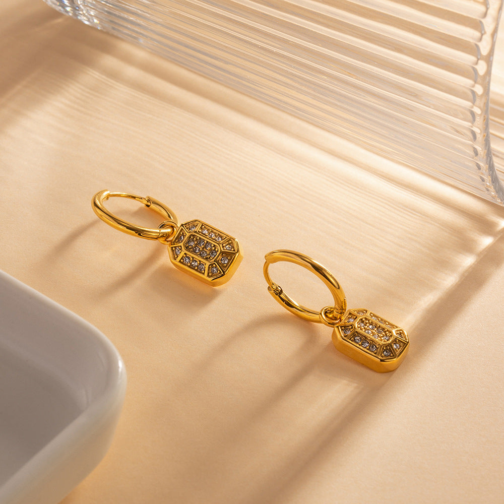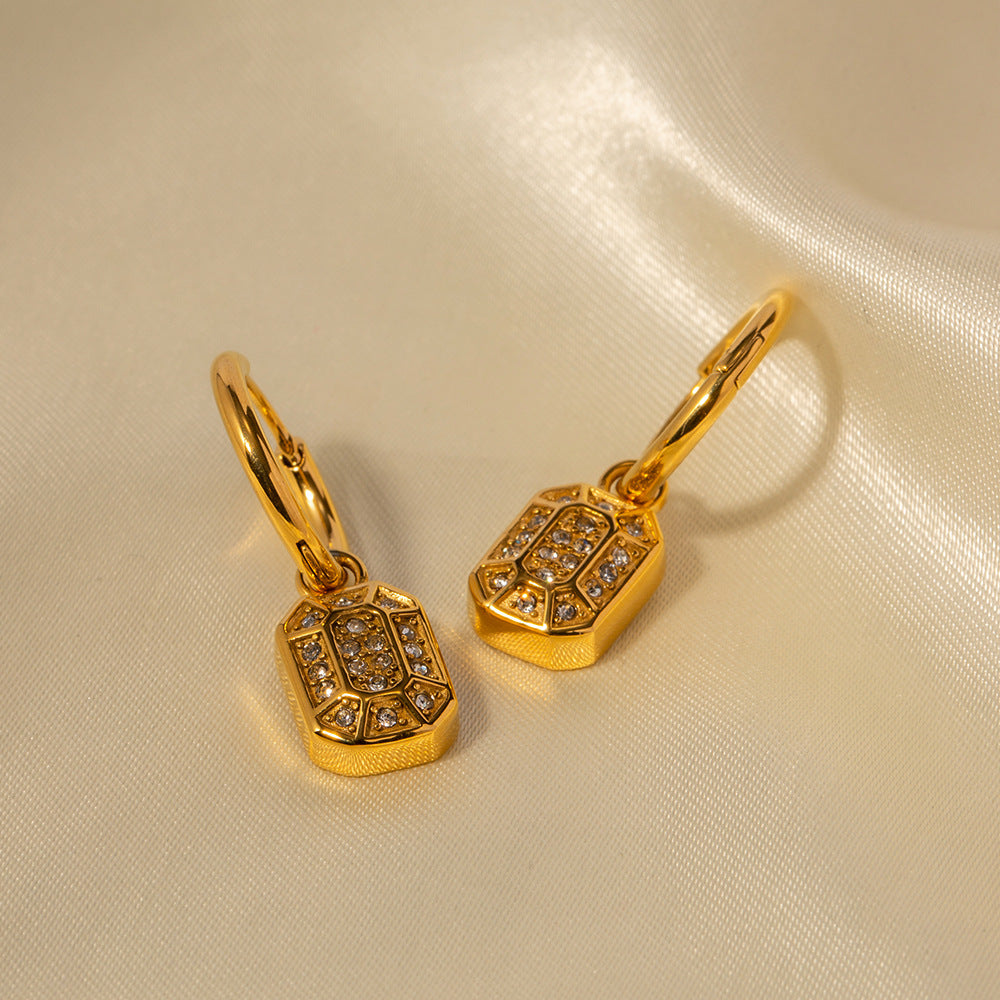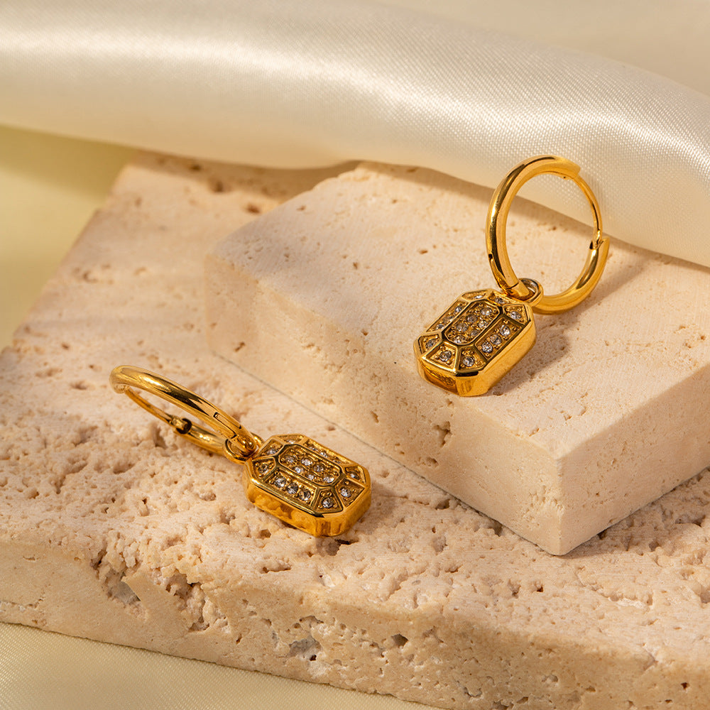18K Gold Fashion Simple Square Diamond Pendant Design Versatile Earrings