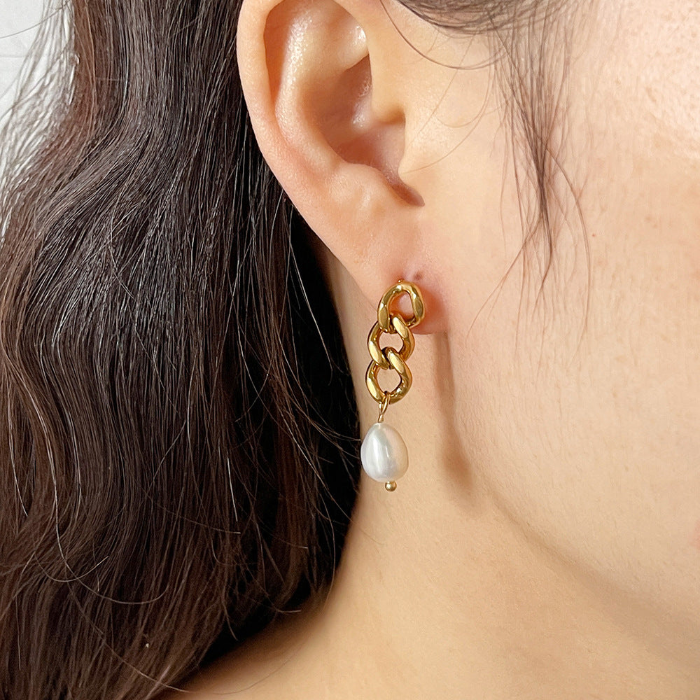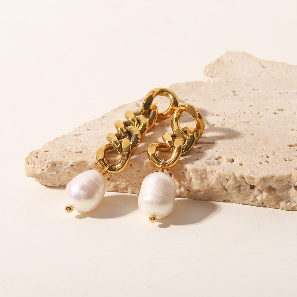 18K Gold Plated Pearl Asymmetric Chain Earrings