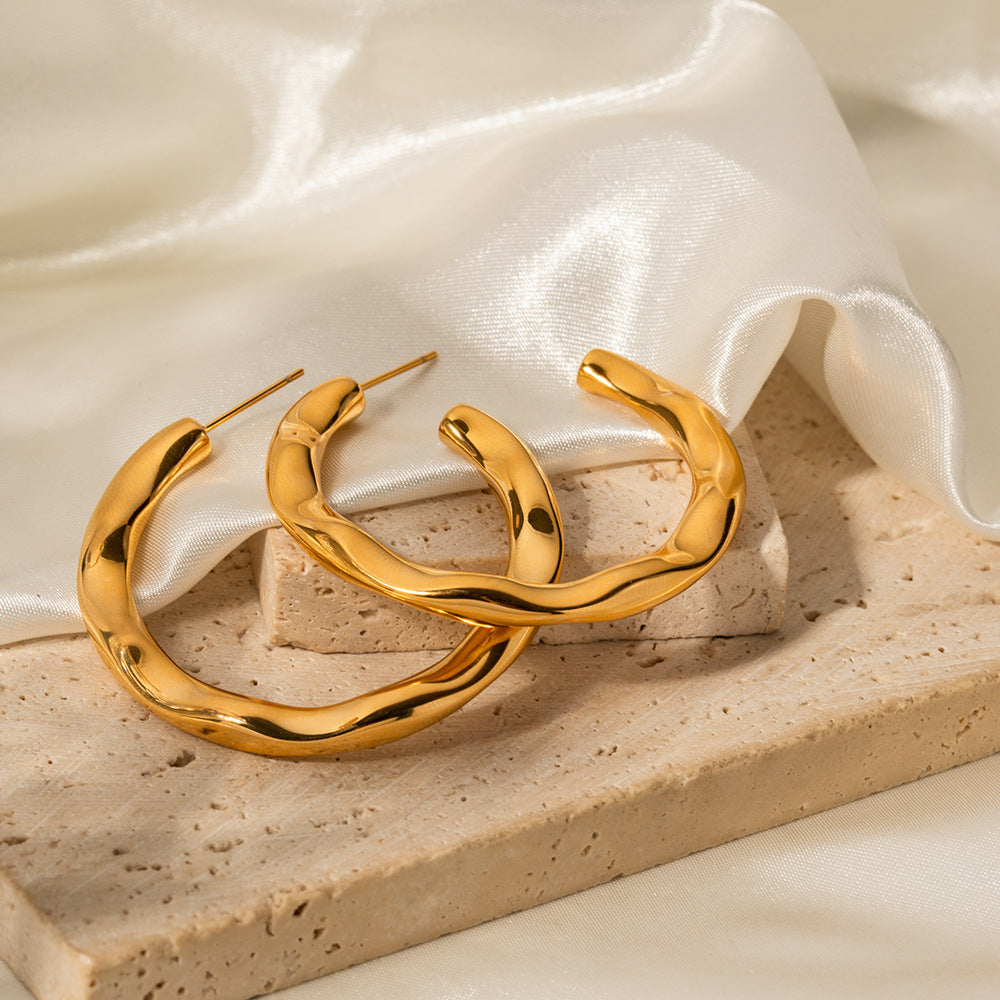 The luster of 18K gold complements the hammer pattern design, making the earrings more dazzling. Whether paired with everyday casual outfits or evening gowns, these earrings will add style and personality to your look.