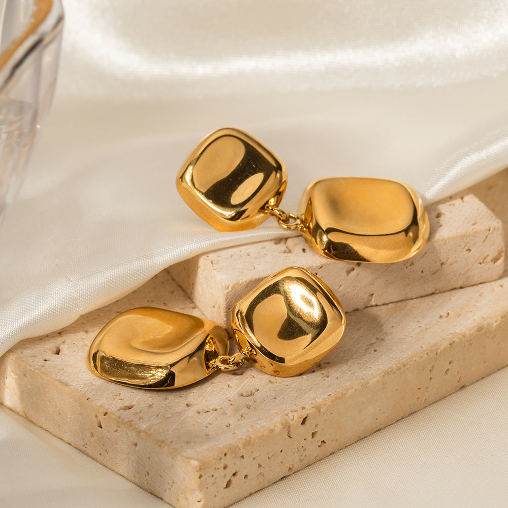 18K Gold Trendy Simple Concave Square Design Drop Earrings