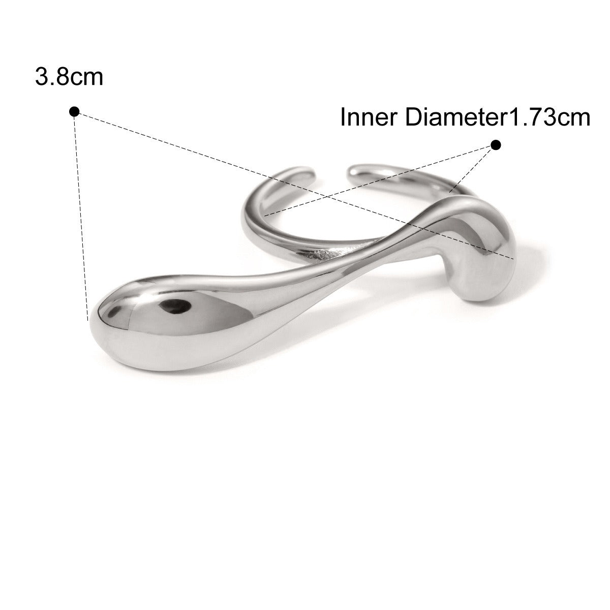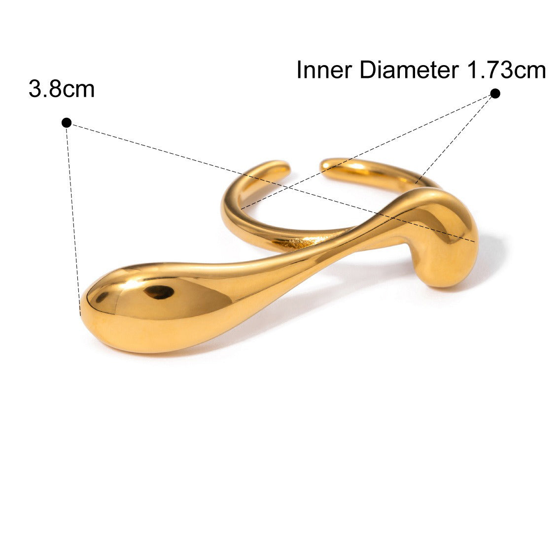 This ring perfectly combines modern design with noble texture. The teardrop-shaped design shows natural beauty and elegance, while the irregular curves add to the fashion sense and uniqueness of the ring. Whether it is a fashion party or daily wear, this ring can add a sense of fashion and personalization to your look, showing your unique fashion taste and personal charm.