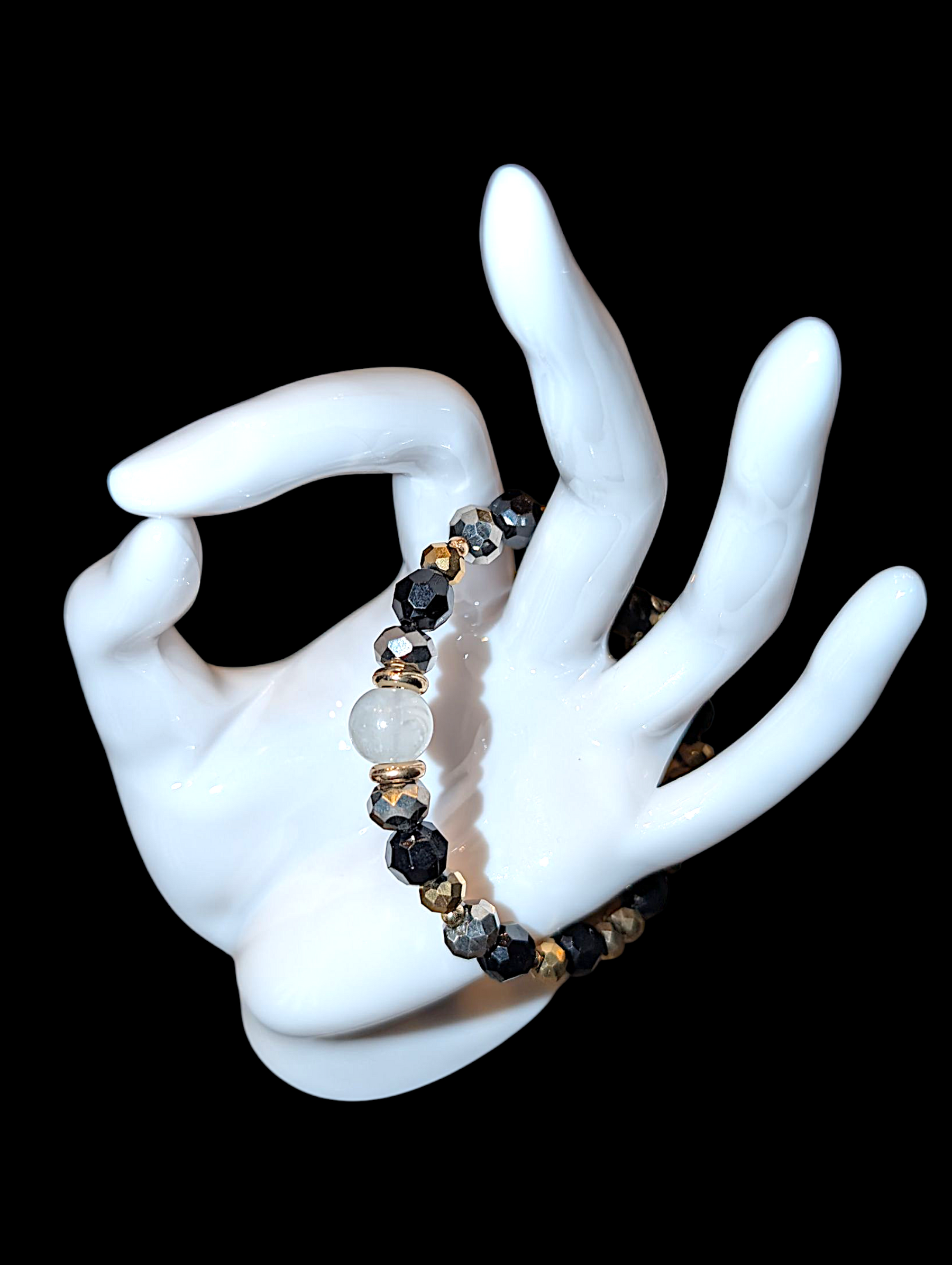 ADJUSTABLE SIZE - These 8mm beads along with center piece of 10mm are strung on a very sturdy but flexible memory wire to adjust to your arm size.