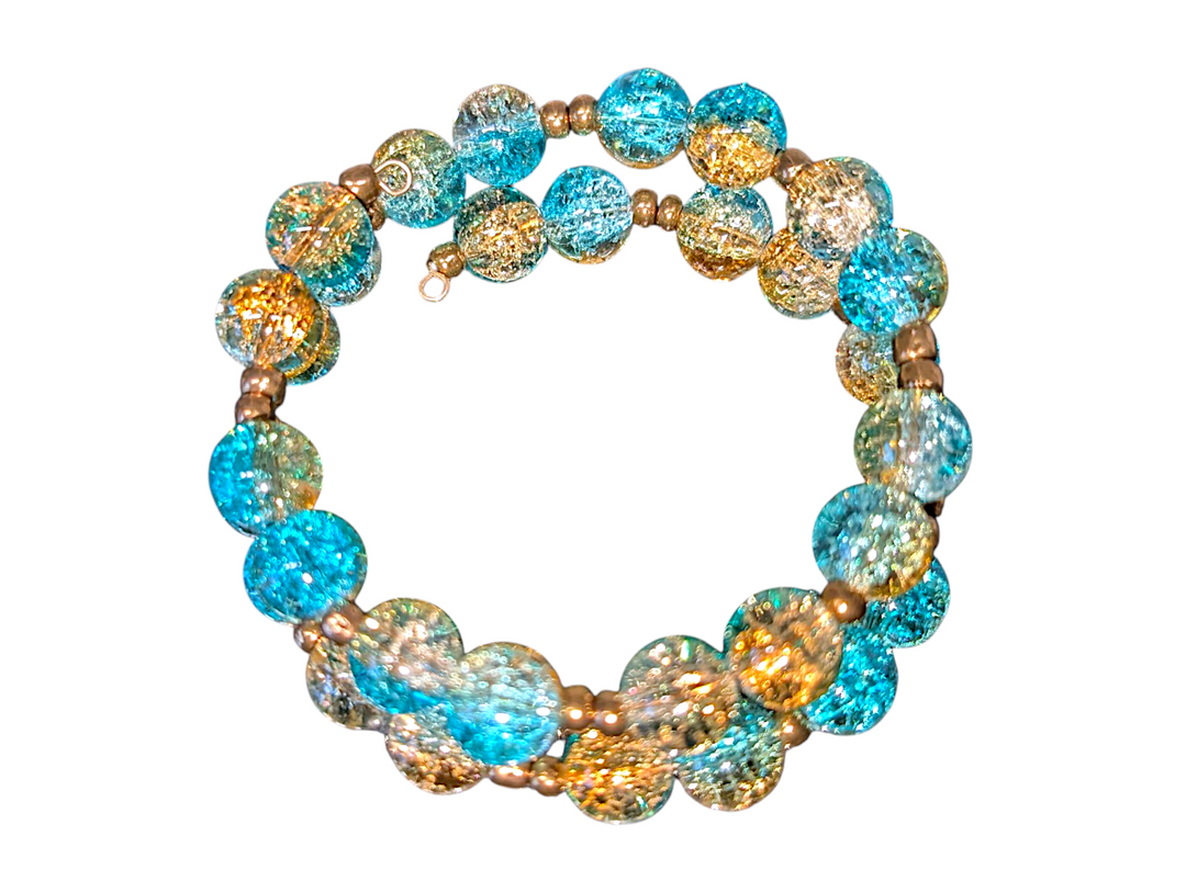 MATERIAL - Glass, Memory Wire, Beads. No hassle closing any clasps with this adjustable memory wire bangle. Perfect for people in a hurry that wants to look exquisite.