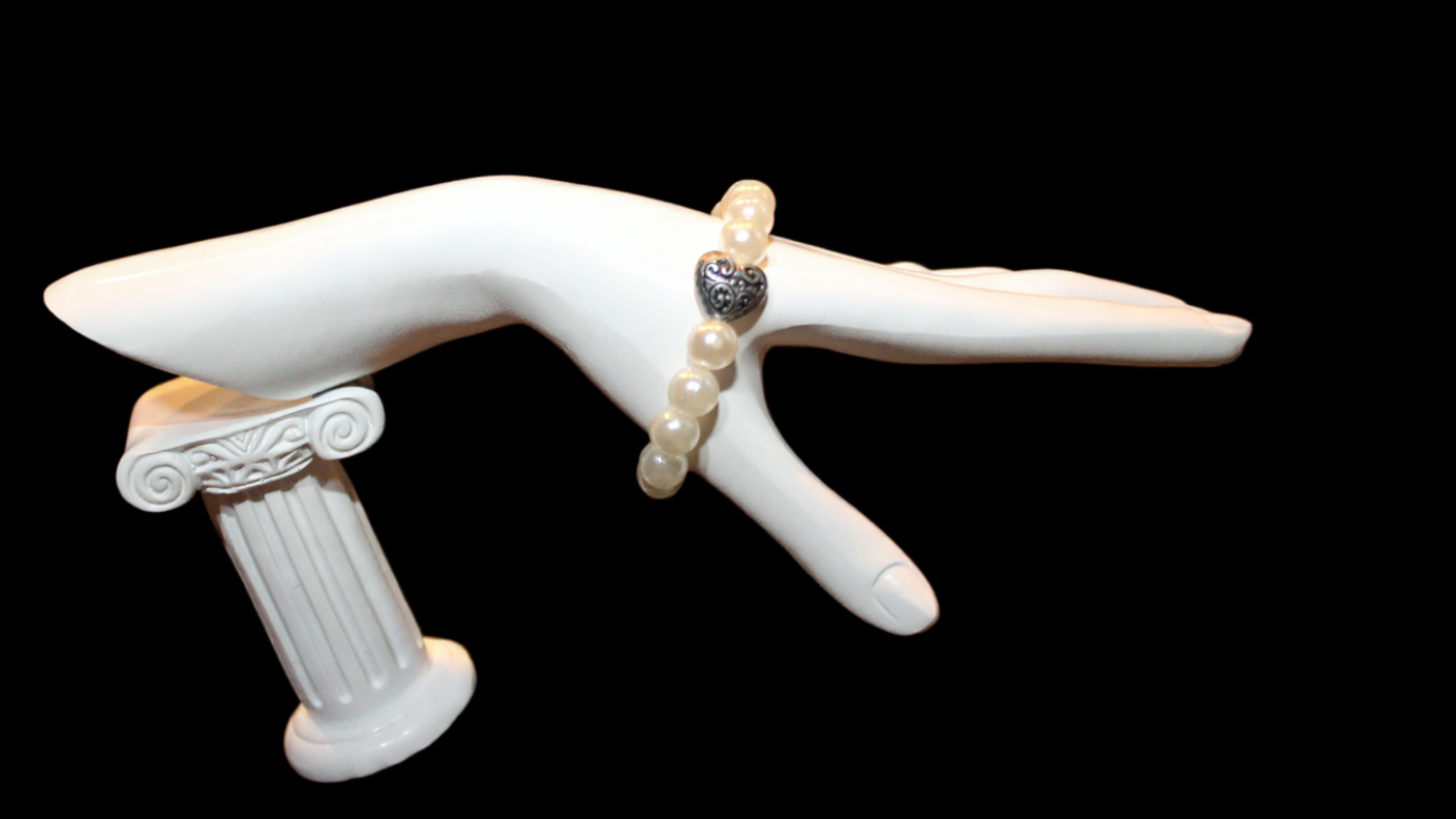 ADJUSTABLE SIZE - These 8mm beads with antique, striking heart charm are strung on flexible material to adjust to your arm size.