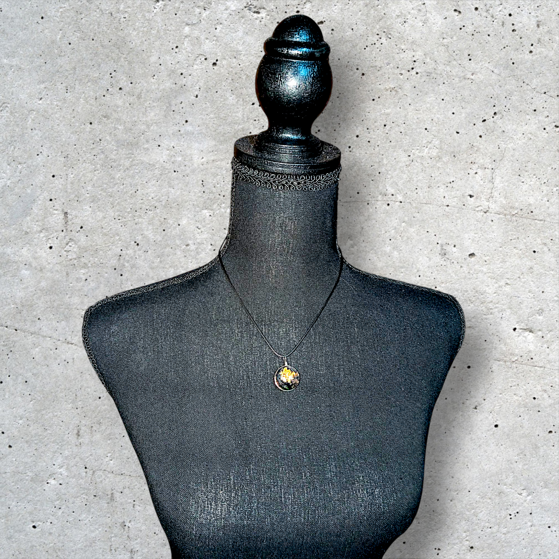 MATERIAL: Dried, Pressed Flower Tree Plant Resin Pendant with Lacework in translucent-shaped pendant.