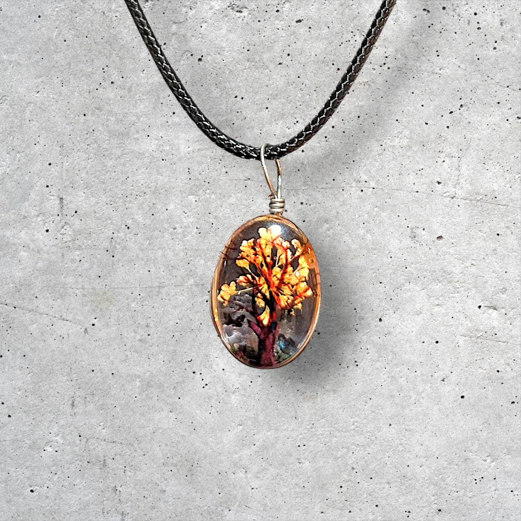 MATERIAL: Dried, Pressed Flower Tree Plant Resin Pendant with Lacework in translucent-shaped pendant.
