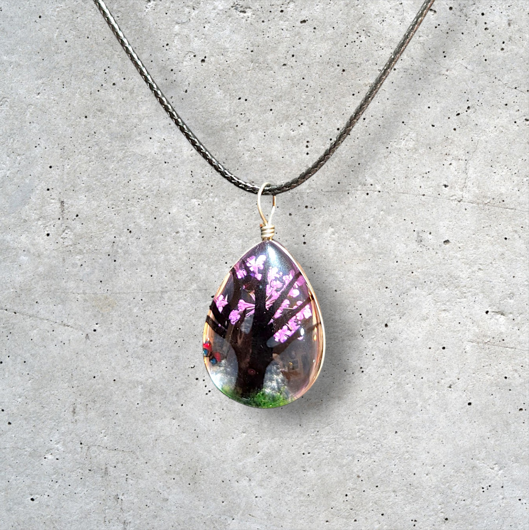 STYLE: Unique translucent pendant necklace features real dried flowers preserved in resin and surrounded by silver wire setting on an 18" rope necklace with a lobster-claw clasp and adjustable extender. The natural properties of real flowers provide a one-of-a-kind look to each piece. The image may show a slight difference in accordance too the actual flowers in color and composition.
