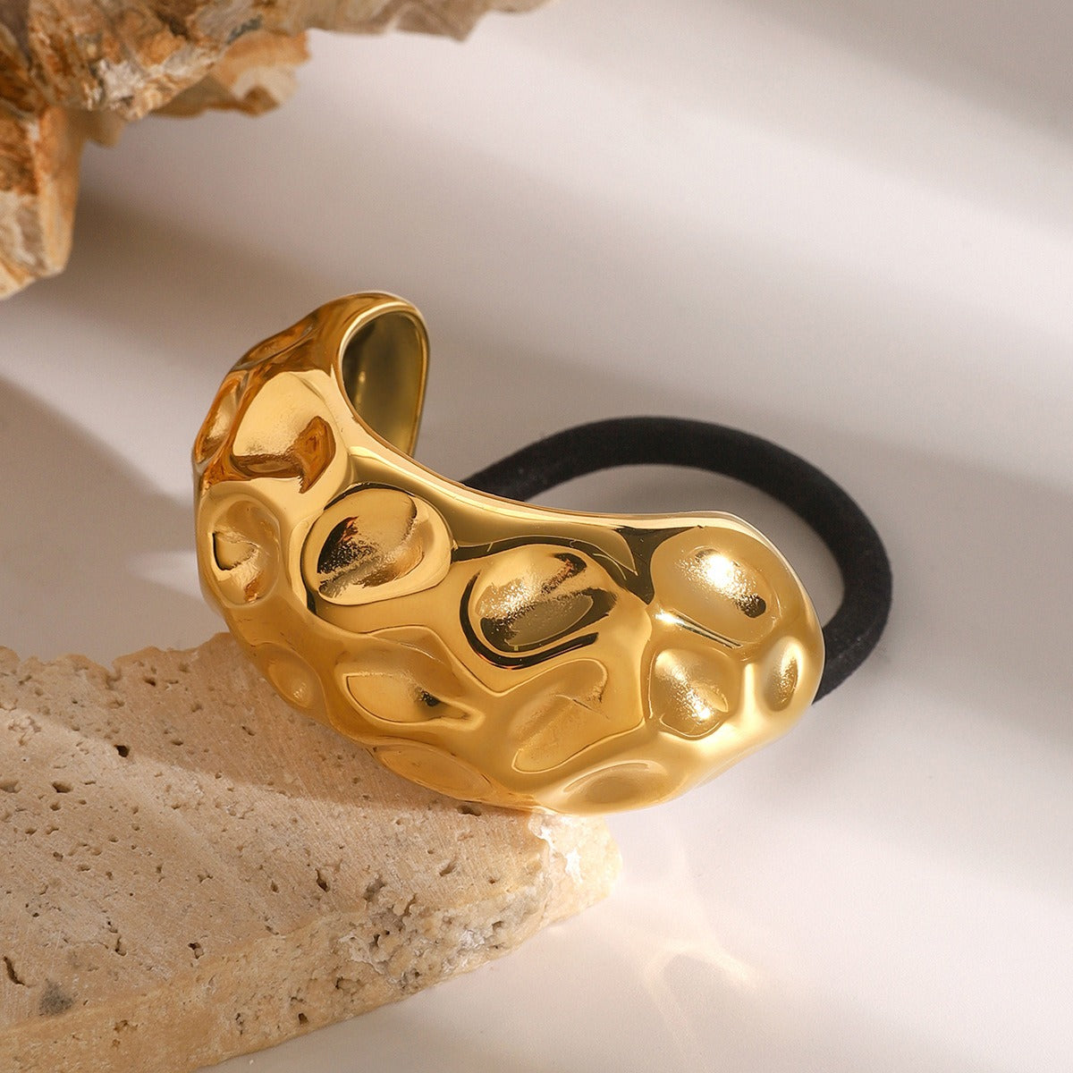 This hair accessory adopts a unique C-shaped outline and exquisite hammer pattern design, combining modern simplicity with classic craftsmanship, showing extraordinary design sense and noble temperament. Every detail has been carefully carved to perfectly present a high-end and fashionable style, making it a dazzling accessory for any occasion. The unique metal texture and delicate texture design create a fashionable item that is both modern and full of personality.
