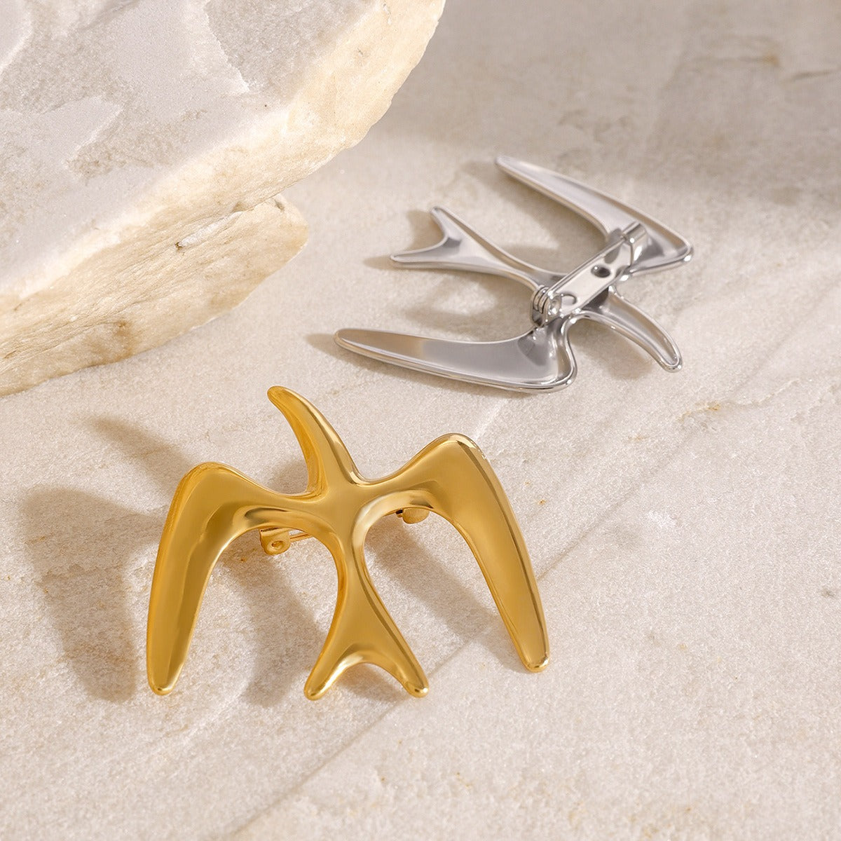 This brooch adopts a geometric swallow shape, which cleverly combines the traditional swallow pattern with modern geometric design, showing a unique personality and modern sense. As a symbol of freedom and flying, the swallow combines simple lines with exquisite craftsmanship to show the perfect fusion of nature and art.