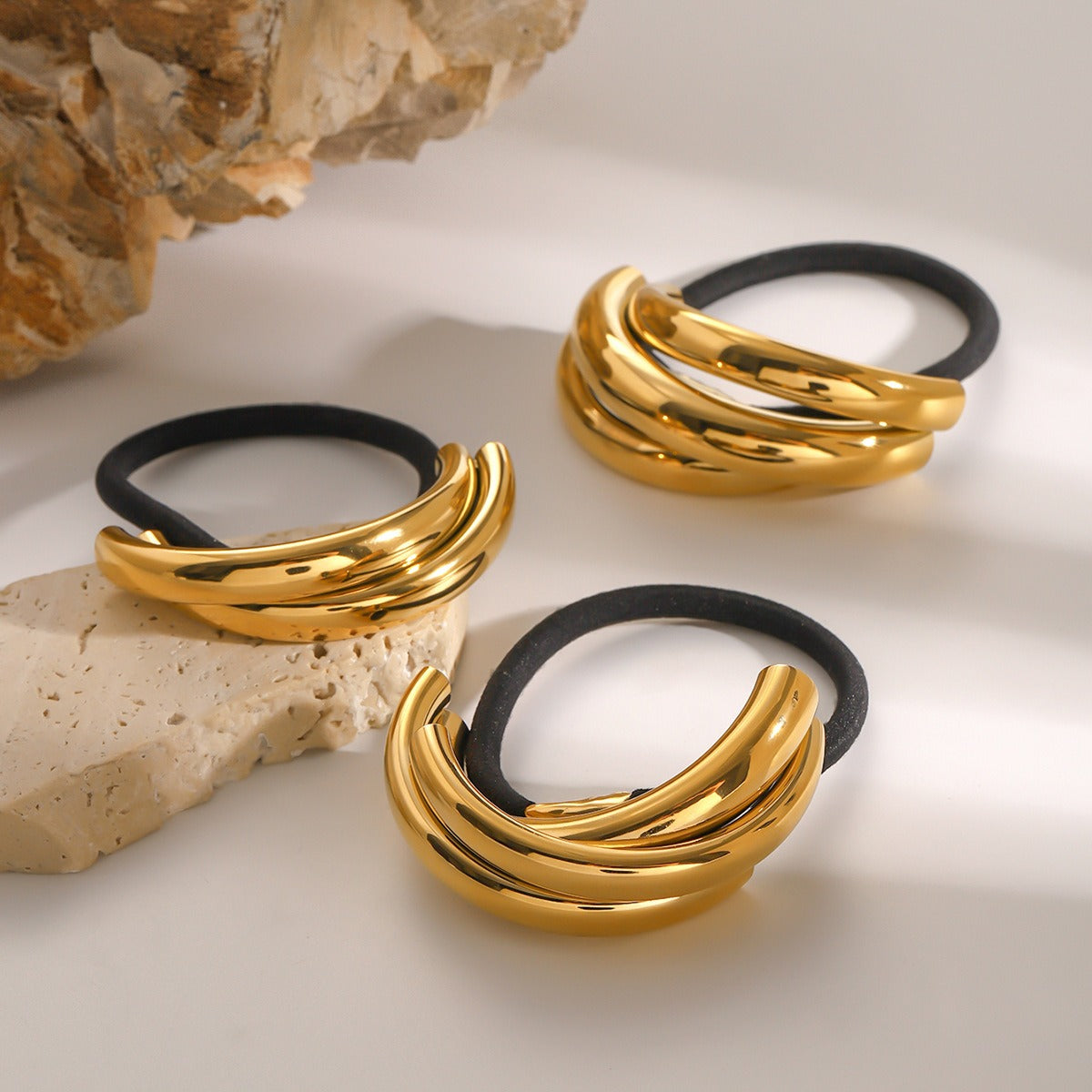 This 18K gold multi-layer C-shaped design hair accessory combines modern simplicity with artistic sense. The layered design is full of creativity and shows a unique fashion charm.