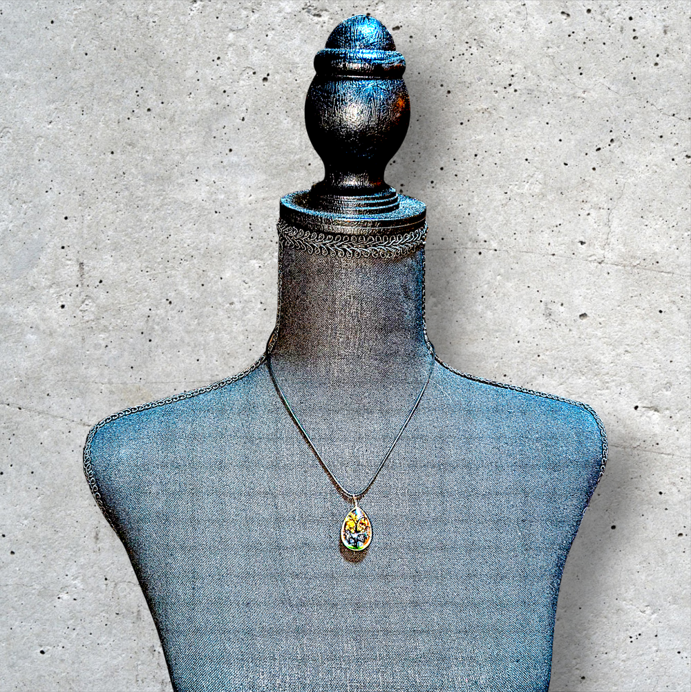 STYLE: Unique translucent pendant necklace features real dried flowers preserved in resin and surrounded by silver wire setting on an 18" rope necklace with a lobster-claw clasp and adjustable extender. The natural properties of real flowers provide a one-of-a-kind look to each piece. The image may show a slight difference in accordance too the actual flowers in color and composition.