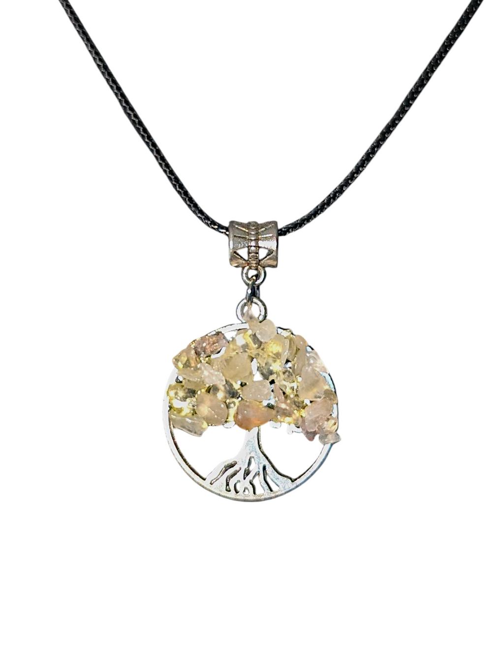 STYLE: Unique Tree of Life Mixed Stone setting on an 18" rope necklace with a lobster-claw clasp and adjustable extender.